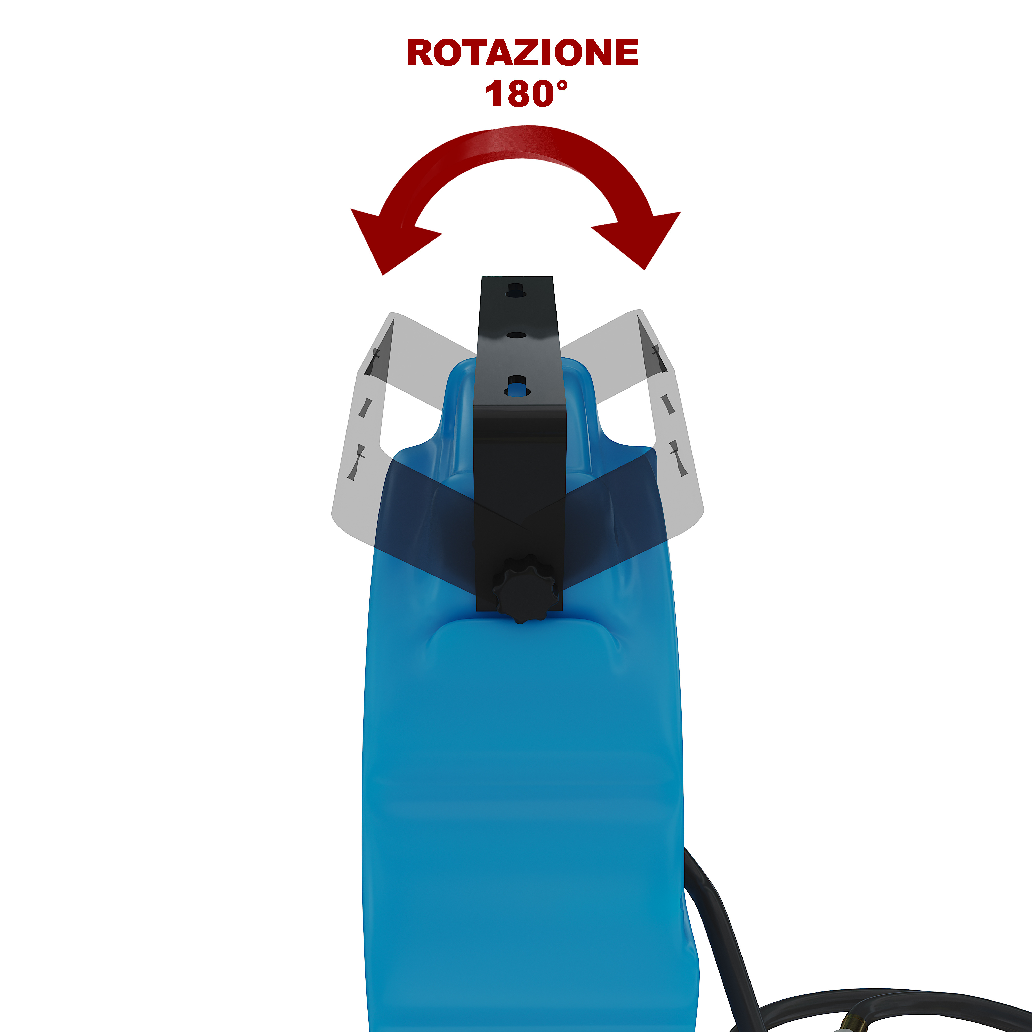 La sua rotazione a 180° ti permetterà di arrivare in tutti i punti, anche quelli più difficili e di muoverti in massima libertà.