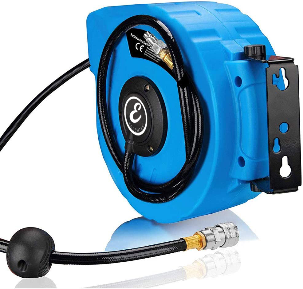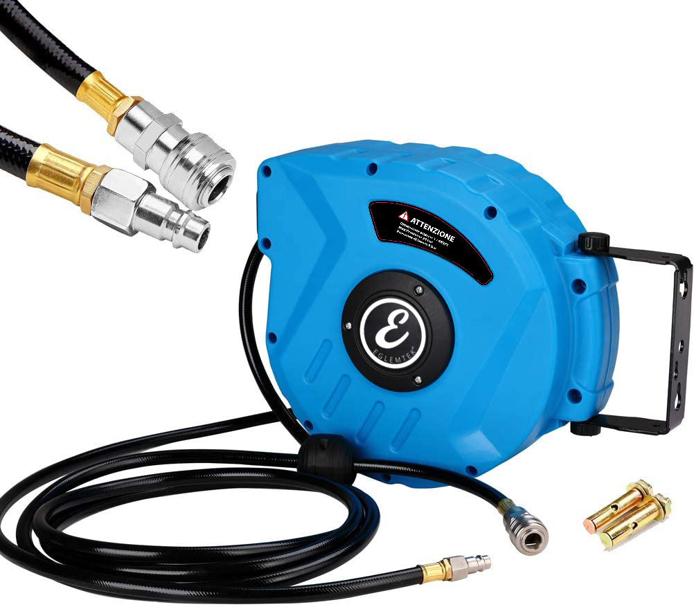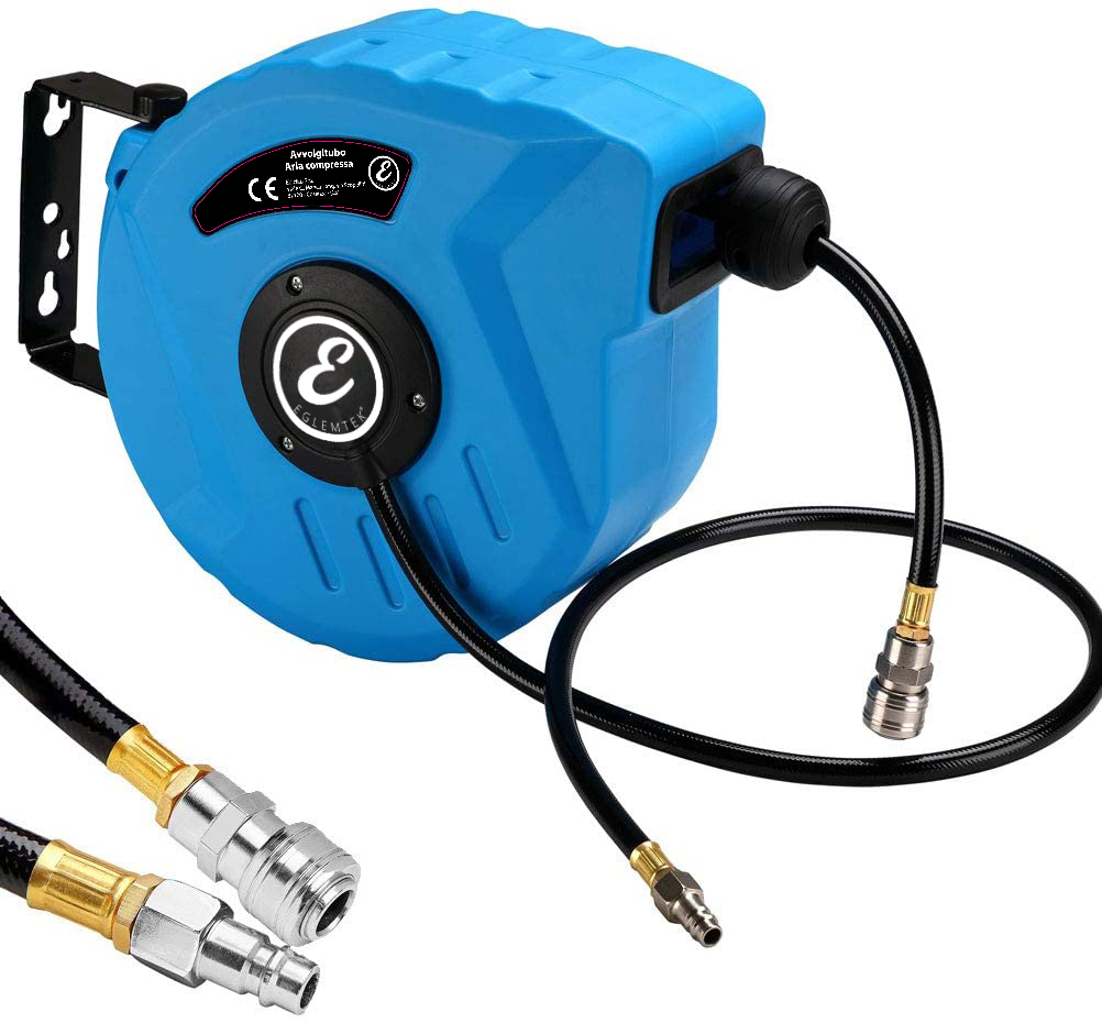 Avvolgitubo Aria Compressa Con Tubo Professionale Attacco 1/4" Fissaggio Parete Muro Sistema Blocco Automatico Riavvolgitore Auto Stop Accessorio Compressore Salvaspazio Pressione 24 Bar (10 + 1 Mt)